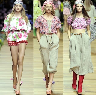 В тази колекция се наблюдават индиански нотки.Обувките са гладиаторски на високи токчета, а чантите са дълги и се носят на едно рамо.